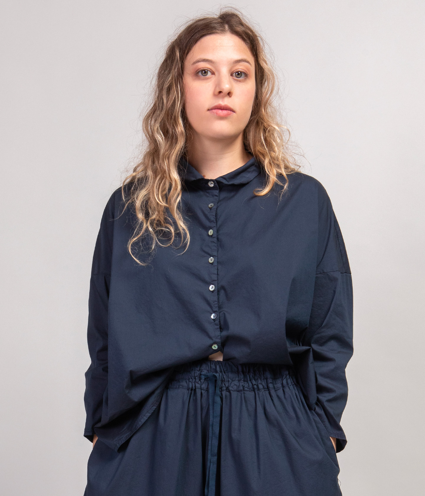 La maggior parte dei nostri capi hanno una vestibiltà ampia o oversize. Per questo motivo, spesso proponiamo solo due taglie: S e L. La differenza tra le due taglie consiste principalmente nella diversa lunghezza del capo e ampiezza della manica.Tutte le taglie sono, invece, disponibili per i capi con vestibiltà più asciutta e per i capi unisex.