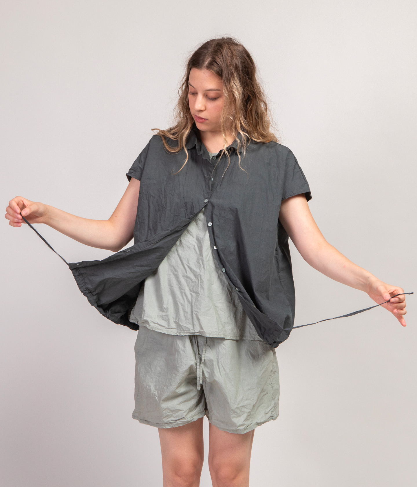 La maggior parte dei nostri capi hanno una vestibiltà ampia o oversize. Per questo motivo, spesso proponiamo solo due taglie: S e L. La differenza tra le due taglie consiste principalmente nella diversa lunghezza del capo e ampiezza della manica.Tutte le taglie sono, invece, disponibili per i capi con vestibiltà più asciutta e per i capi unisex.