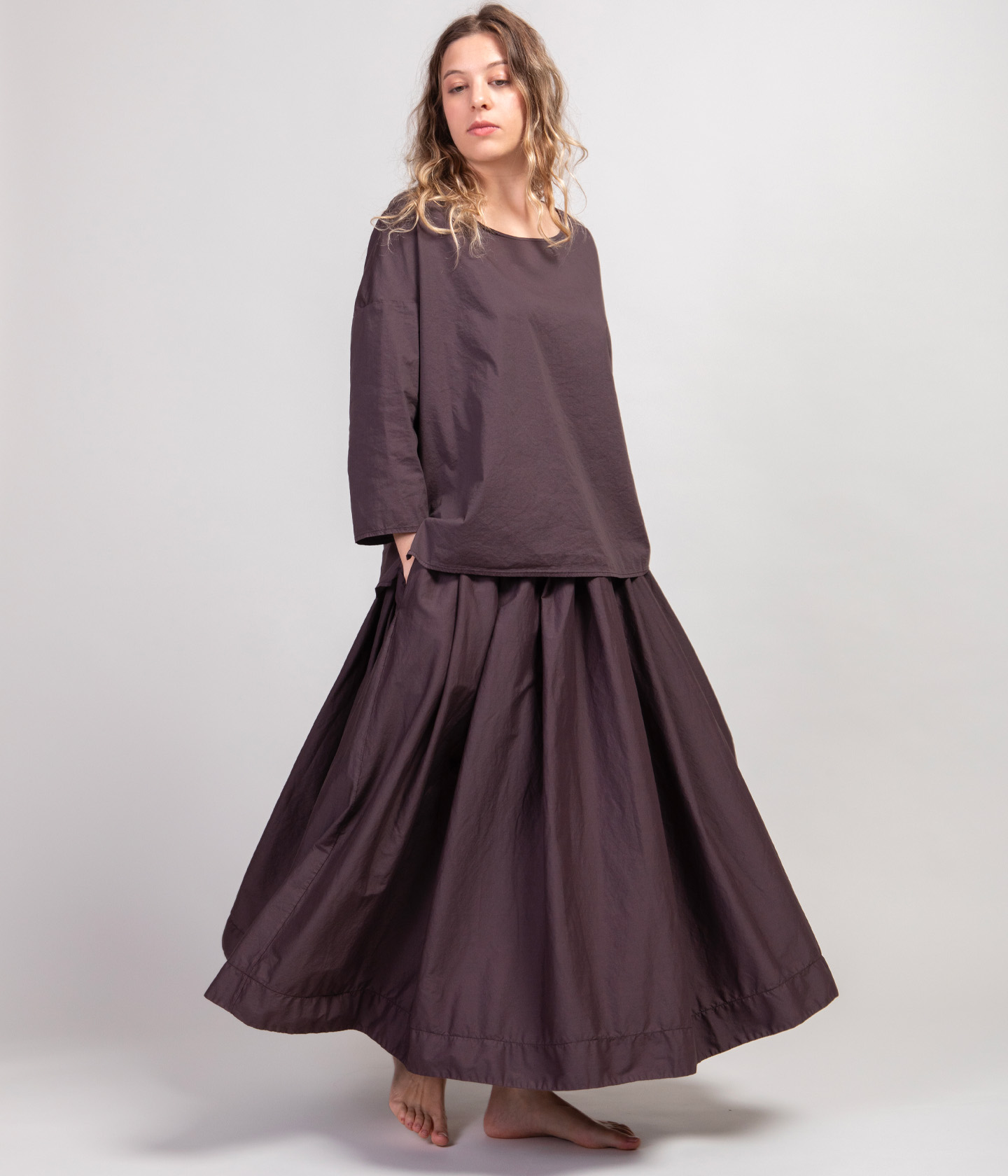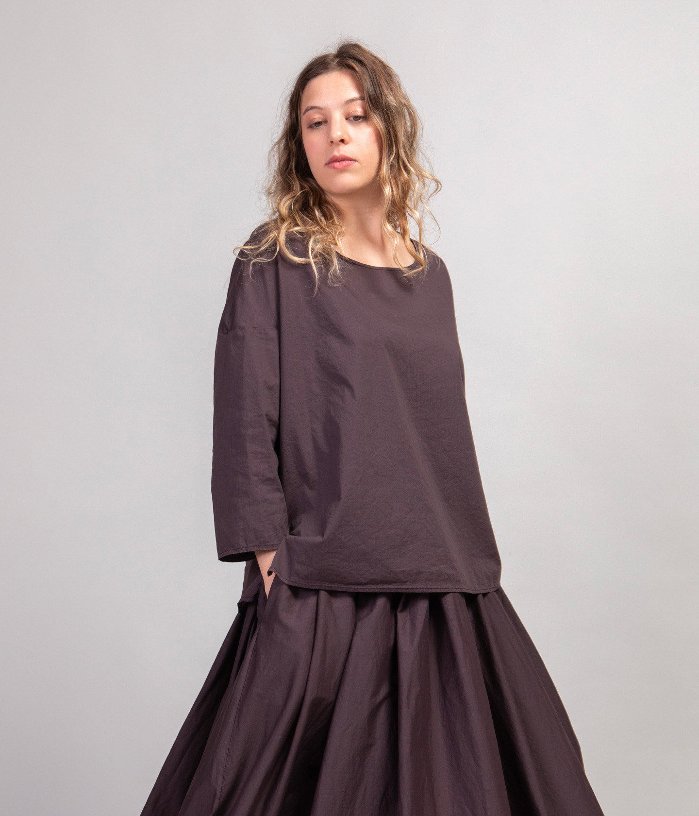 La maggior parte dei nostri capi hanno una vestibiltà ampia o oversize. Per questo motivo, spesso proponiamo solo due taglie: S e L. La differenza tra le due taglie consiste principalmente nella diversa lunghezza del capo e ampiezza della manica.Tutte le taglie sono, invece, disponibili per i capi con vestibiltà più asciutta e per i capi unisex.