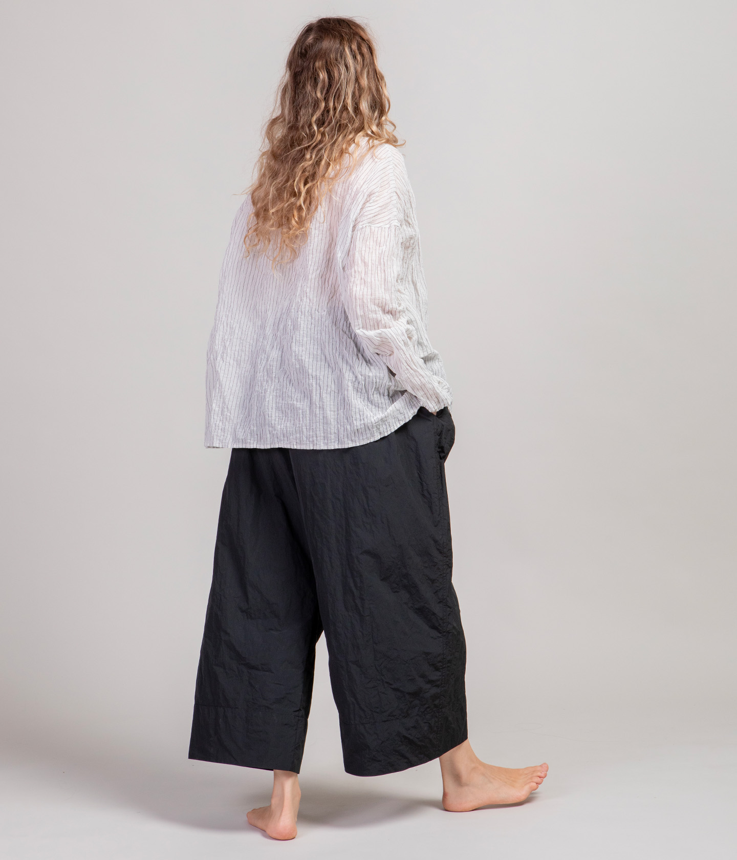 La maggior parte dei nostri capi hanno una vestibiltà ampia o oversize. Per questo motivo, spesso proponiamo solo due taglie: S e L. La differenza tra le due taglie consiste principalmente nella diversa lunghezza del capo e ampiezza della manica.Tutte le taglie sono, invece, disponibili per i capi con vestibiltà più asciutta e per i capi unisex.